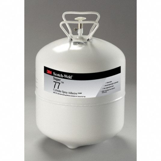 Its fast aggressive tack makes it ideal for a wide variety of projects. Super 77 Cylinder Spray Adhesives Product Description 3M Scotch-Weld Super 77 Cylinder Spray Adhesives is an industrial grade versatile bulk mist spray adhesive designed for lightweight applications. 3M spray adhesives are available in portable aerosol cans spray cylinders and in bulk for large jobs.