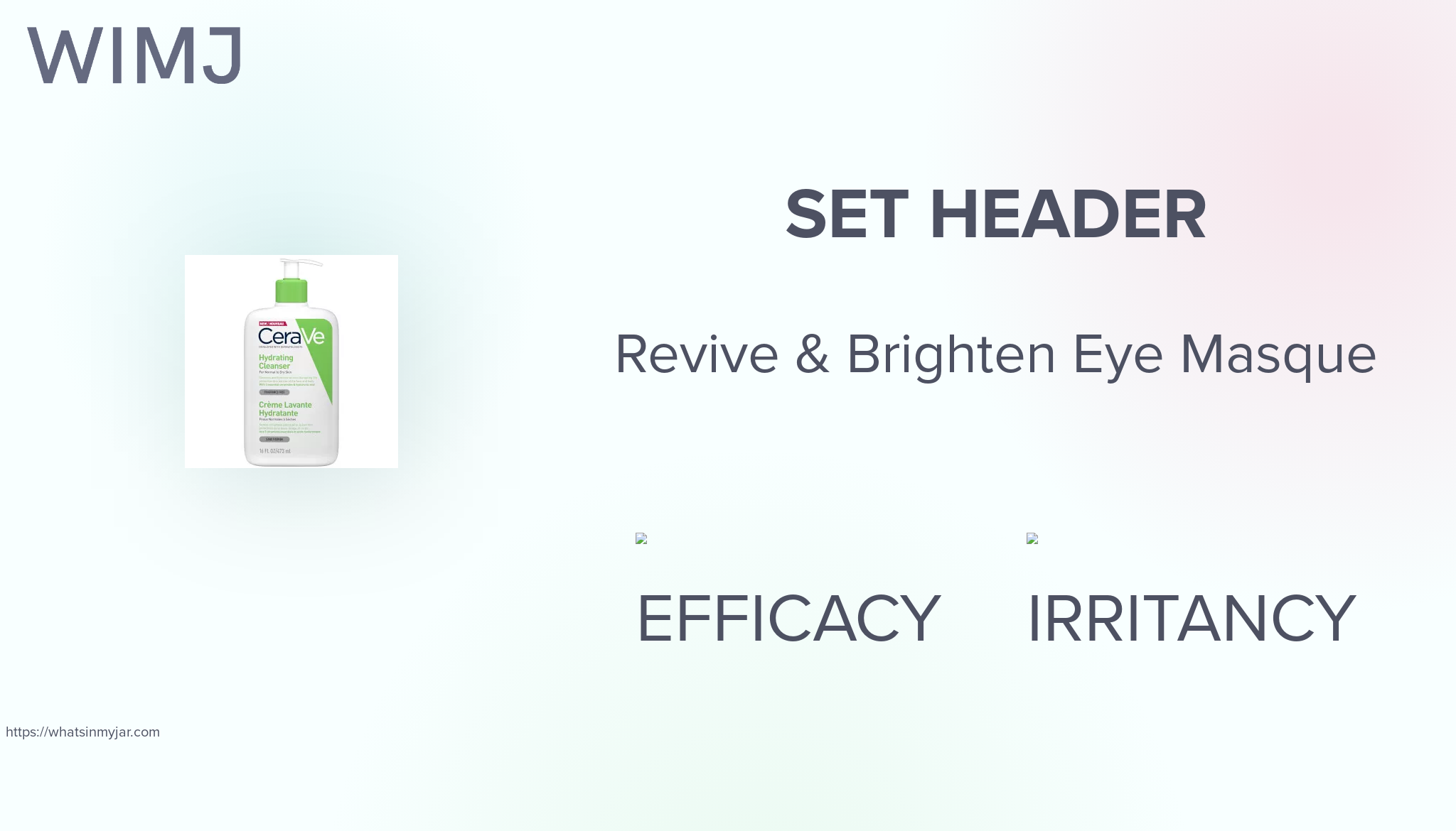 Find out if Meaningful Beauty Revive Brighten Eye Masque is a good fit for your skin with our ingredient checker and analysis. Free returns are available for the shipping address you chose. Leave on for 10 to 15 minutes.