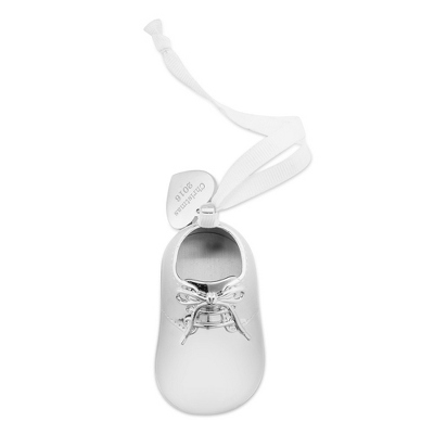 Personalized baby bootie ornament. Get your newest family member their first Christmas Ornament today available in porcelain or silver. We can print up to 2 lines one for the name and one for the birthdate with 18 characters each. 2259 1449 FREE shipping.