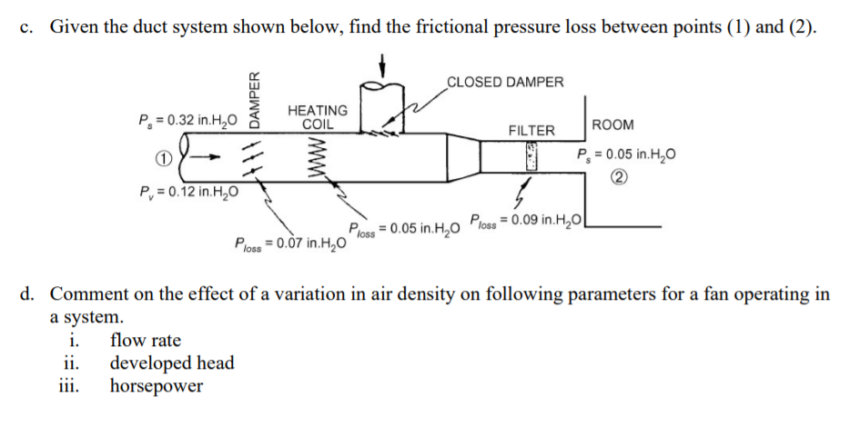 Throughout the duct system is constant. Include the duct system. The static pressure velocity pressure and total pressure measured in a duct system are measured in Inches of water column The duct material that has the least friction loss is.